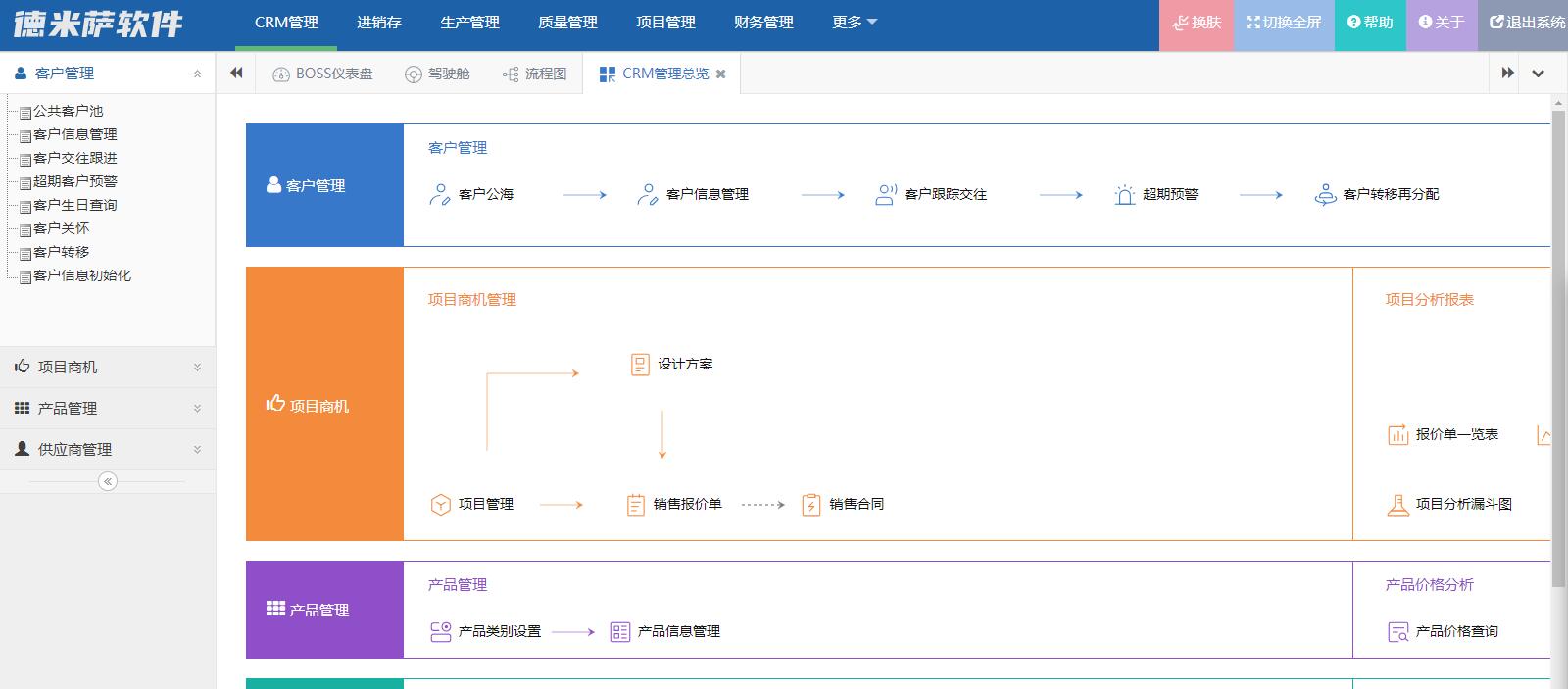 1、客户管理:公共客户池、客户信息管理、交往记录管理、客户漏斗图、超期客户预警、客户生日查询、客户关怀、客户转移、客户统计、客户信息初始化。
