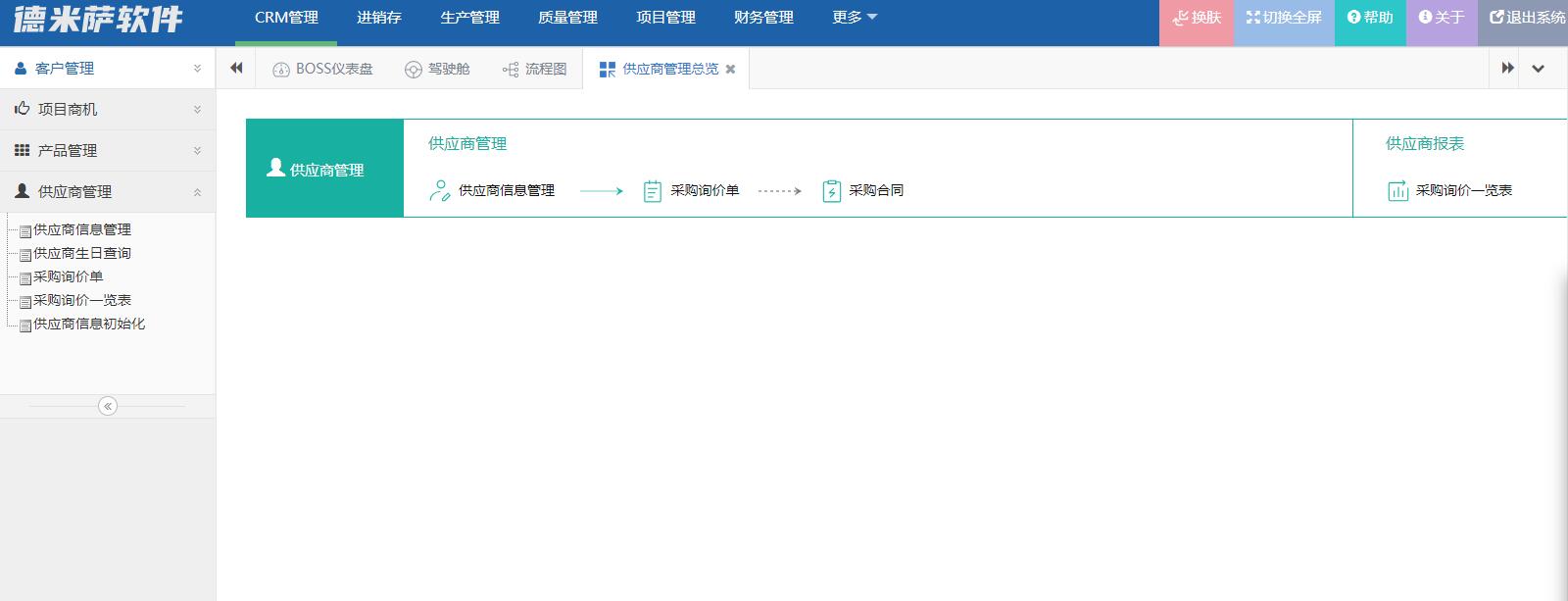 4、供应商管理:供应商信息管理、供应商生日查询、采购询价单、供应商信息初始化、采购询价一览表。